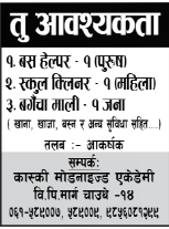 | तलब | : | NRs. 15,000.00 - 18,000.00 Monthly |