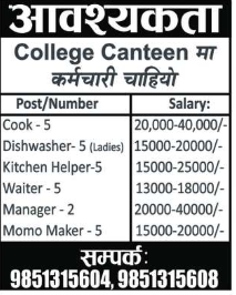College Canteen # कर्मचारी चाहियो