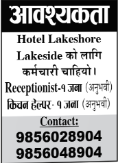 Hotel Lakeshore Lakeside को लागि कर्मचारी चाहियो ।