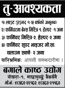 पद: फर्निचर सुपर भाइजर मो.सा. चलाउन सक्ने